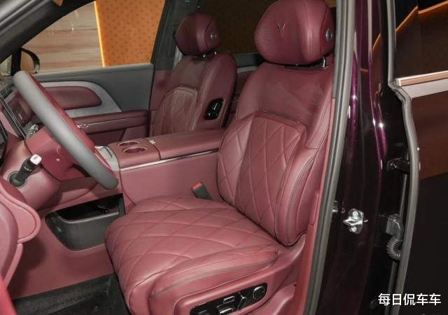 真皮材质座椅触感相当舒适,有丰富的菱形缝线,填充物也很厚实。座椅功能强大,除了常规的多向电动调节、通风、加热与按摩,还有4向腰撑调节,卷曲式电动腿托。