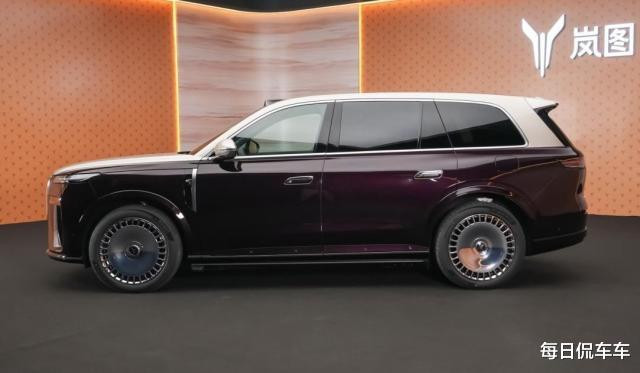 车身尺寸长宽高尺寸分别为5230/2025/1817mm,轴距为3120mm,相比同级主要对手如问界M9,轴距略长些、高度略高些。车身线条整体较为平直,以拓展座舱空间,D柱略带倾斜感。双色车身显得很高级,采用平整化的内扣式门把手,大尺寸亮面实心盘轮圈也很显高级。提供21英寸和22英寸两种轮圈,轮胎规格分别是255/50 R21和275/45 R22,胎宽都很充分。