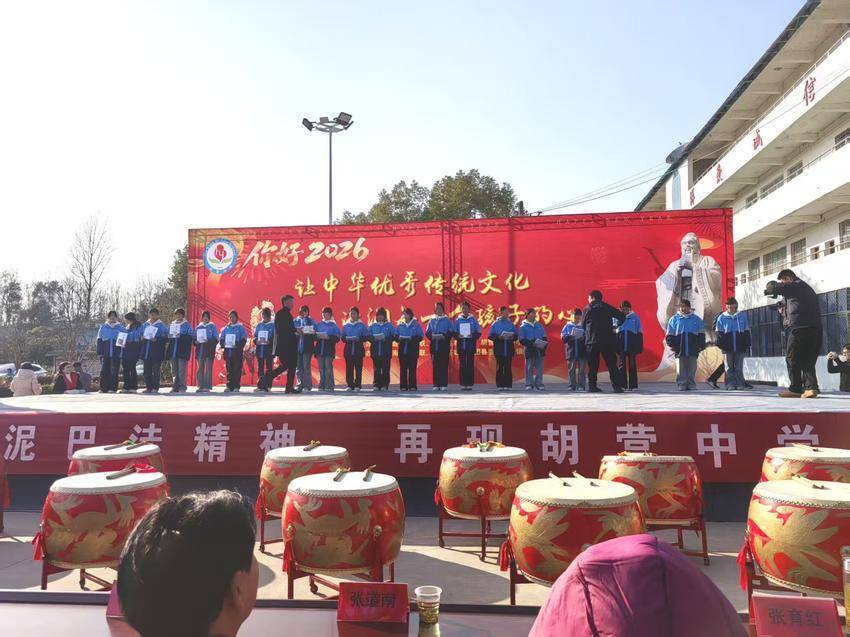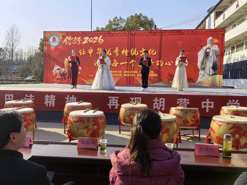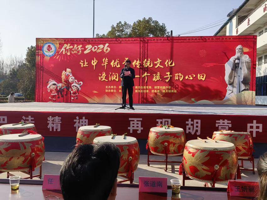 活动伊始,胡营中学校长高鸣发表了热情洋溢的致辞。他代表学校向到场嘉宾致以诚挚的欢迎与感谢,并强调:“中华优秀传统文化是民族的根与魂。学校举办此次艺术节,正是希望以生动活泼的形式,让传统文化走进校园、走进课堂,真正浸润每一位学子的心灵,增强文化自信,培育时代新人。”