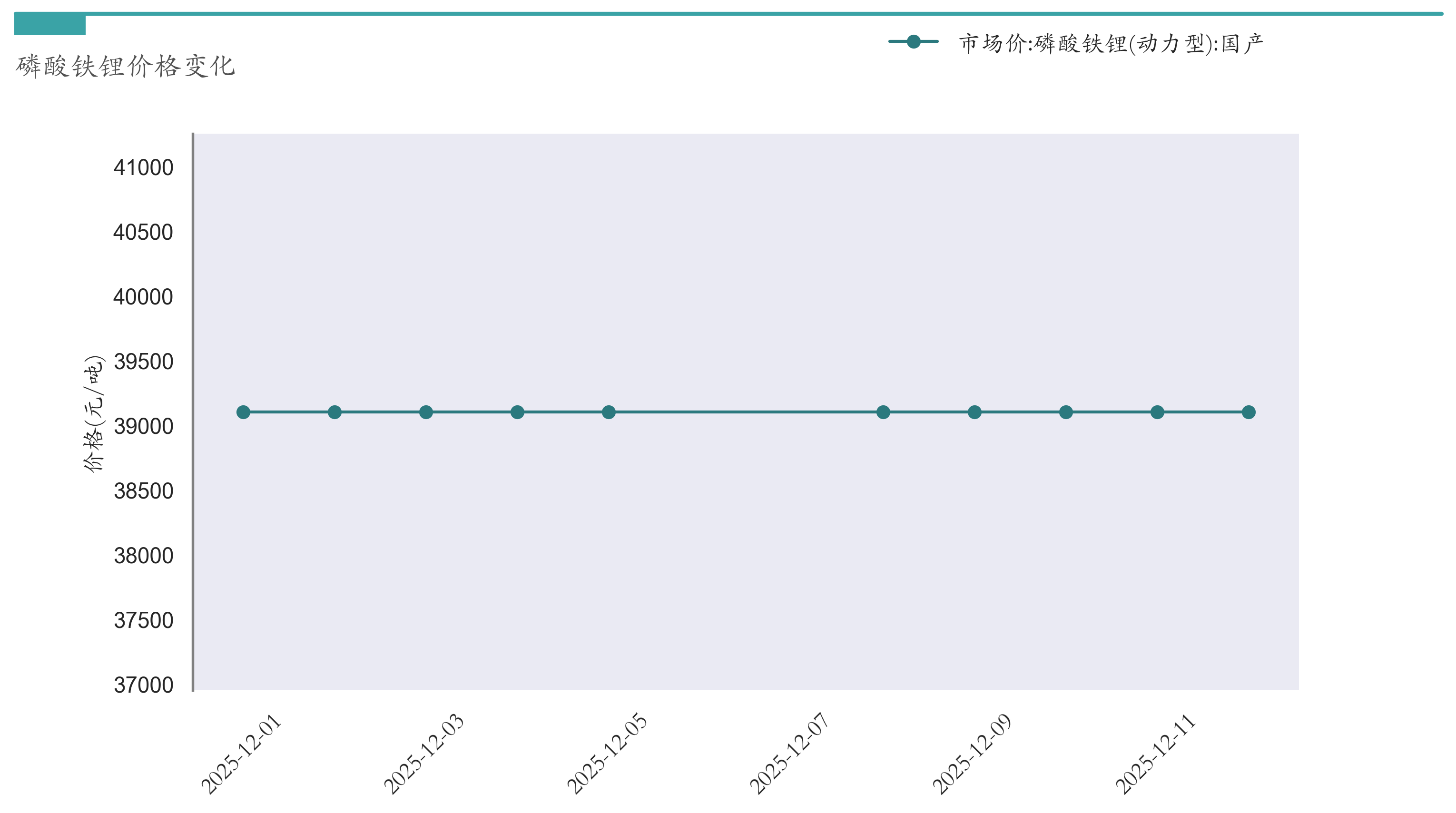 截至12月12日,磷酸铁锂市场报价为39100元/吨,较12月5日持平。近两周磷酸铁锂价格变化如下图所示: