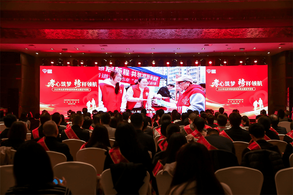 2025年10月30日下午,以“孝心筑梦 榜样领航”为主题的2025年北京市敬老爱老助老主题宣传活动,在北京歌华开元大酒店二层国际新闻大厅举行。活动采用“线下主会场+线上直播”形式,邀请了民政部老龄工作司、中国老龄协会、北京市人大、北京市政协相关部门领导,市老龄委成员单位代表和专家委员会委员,各区民政部门负责人,市政府命名的北京市“孝顺榜样”代表和全国老龄办表彰的全国“敬老文明号”“敬老爱老助老模范人物”先进集体和个人代表等近300人,共同见证首都敬老爱老助老事业的丰硕成果,传递孝老爱亲的时代暖流。